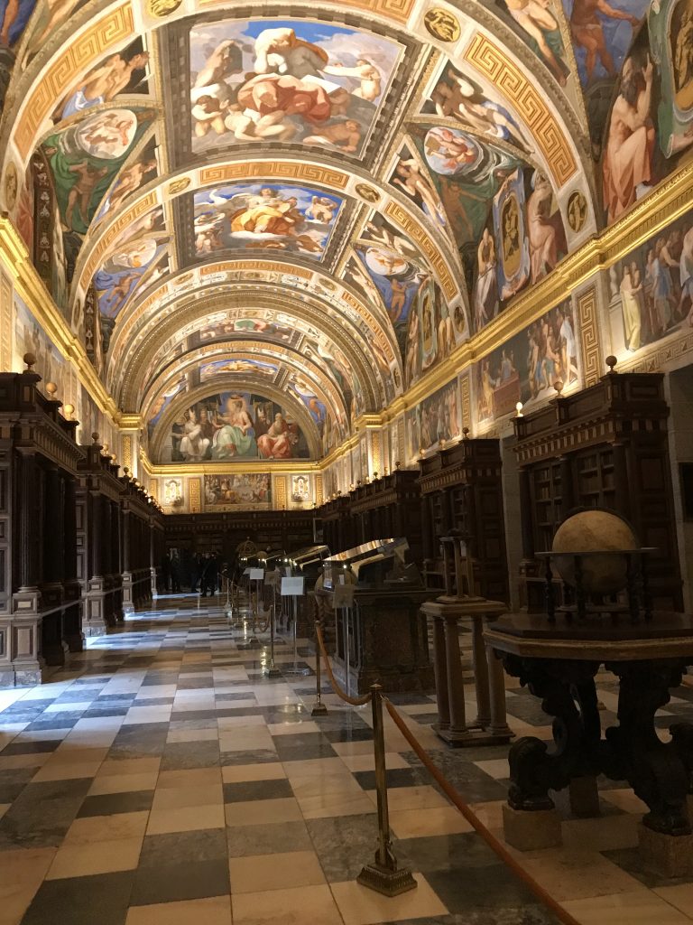 على بعد ساعة زمن من العاصمة مدريد تشمخ مكتبة دير الأسكوريال، التي تحوي آلاف المخطوطات، ومئات آلاف الوثائق والمحفوظات النفيسة والنادرة جدا، والتي تشكل جزءا مهما وكبيرا من كنوز المملكة الأسبانية، ومذخوراتها. تضم هذه المجموعة نفائس المخطوطات العربية والإسلامية بالغة الأهمية. والتي عمل بعض الباحثين المختصين بالتاريخ الحضاري العربي والإسلامي سنواتٍ عديدة على فهرستها؛ ليخرج عمله في ثلاثة مجلدات متاحة عبر الشابكة. كان لممثل النادي والفريق المصاحب له زيارة خاصة للمكتبة، أعد لها قبل وقت باكر. استقبل الوفد العماني بعض المختصين العاملين بالمكتبة، التي يرجع مبناها العتيق إلى حوالي خمسمئة عام، صمم في شكل حصن منيع، يضم مقرا ملكيا، وديرا، ومدرسة، وجامعة. المبنى المهيب يضم ثروة ضخمة يرتد بعضها لآلاف السنين؛ حوت إرث ملوك أسبانيا، ثم من تعاقب على الحكم في المنطقة عبر مراحل تاريخية مختلفة، إلى جانب ما وضعت عليه السلطات الحاكمة قديما اليد بطرق مختلفة؛ بخاصة خزانة السعديين المغربية، وغيرها.